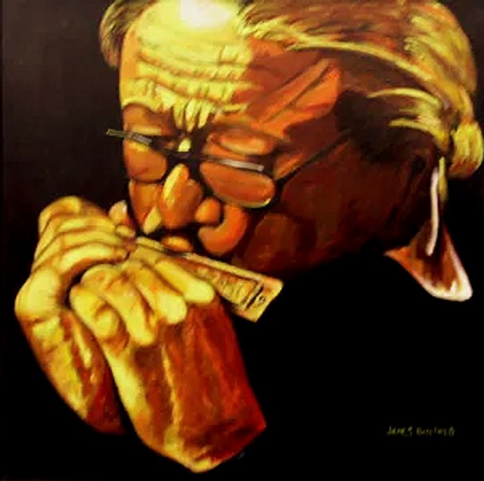 Today, James continues to accept commissions of all sizes, creating deeply personal works for clients across the country. His pieces grace private collections throughout the United States, each one reflecting the dedication and depth of a self-taught artist who never stopped creating.